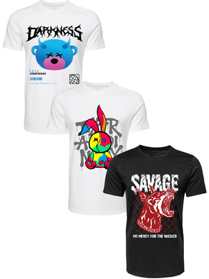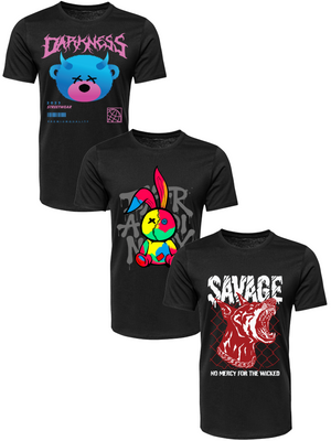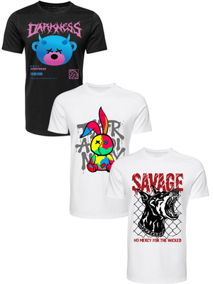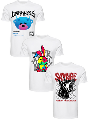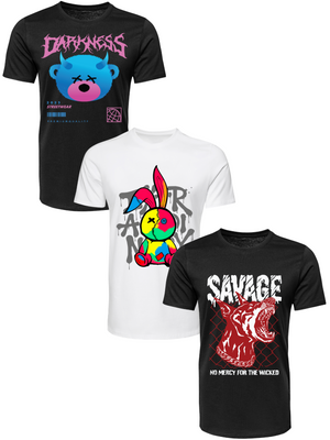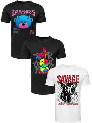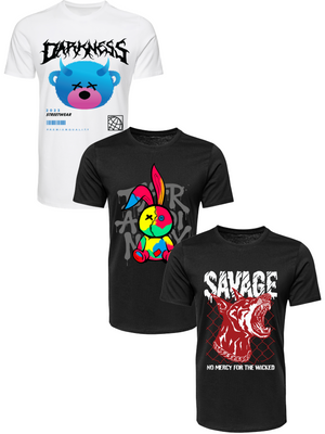 Kit Camiseta 3 Unidades (Darkness Bear - Color Rabit - Savage Dog) ESTAMPAS FRENTE