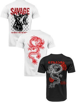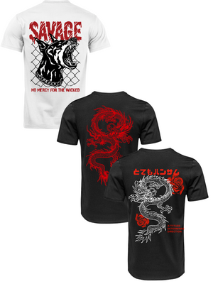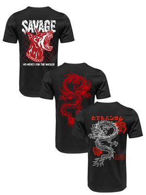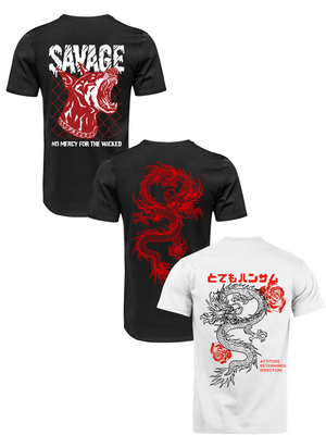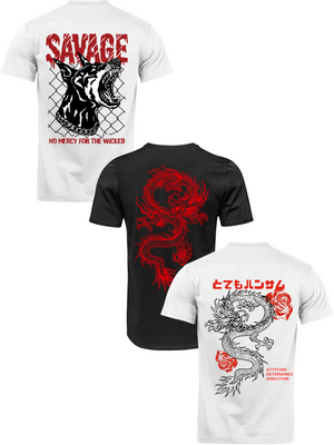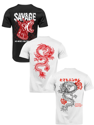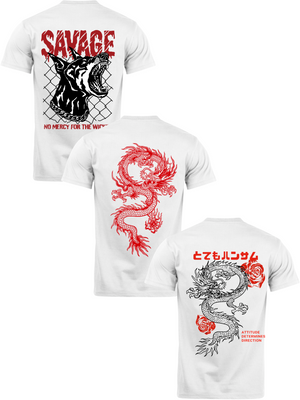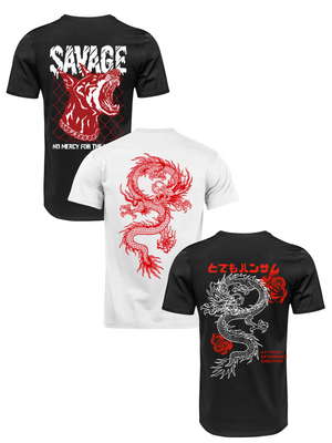 Kit Camiseta 3 Unidades (Savage Dog - Red Dragon - Rose Dragon) ESTAMPAS COSTAS